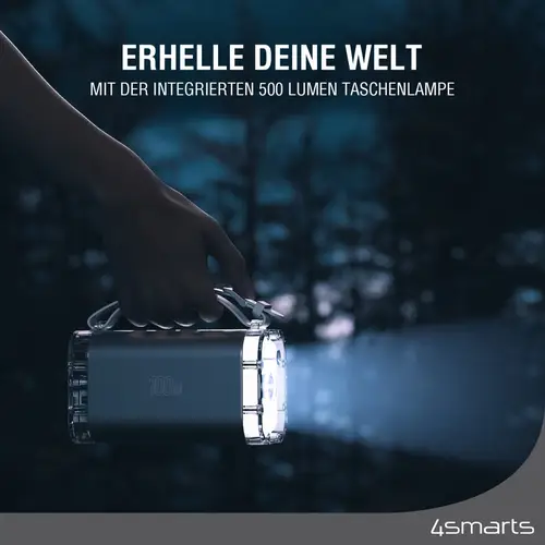 • 500 Lumen Leistung: Der Notakku besitzt auch eine integrierte Taschenlampe mit 4 verschiedenen Helligkeitsstufen, sowie eine SOS-Funktion