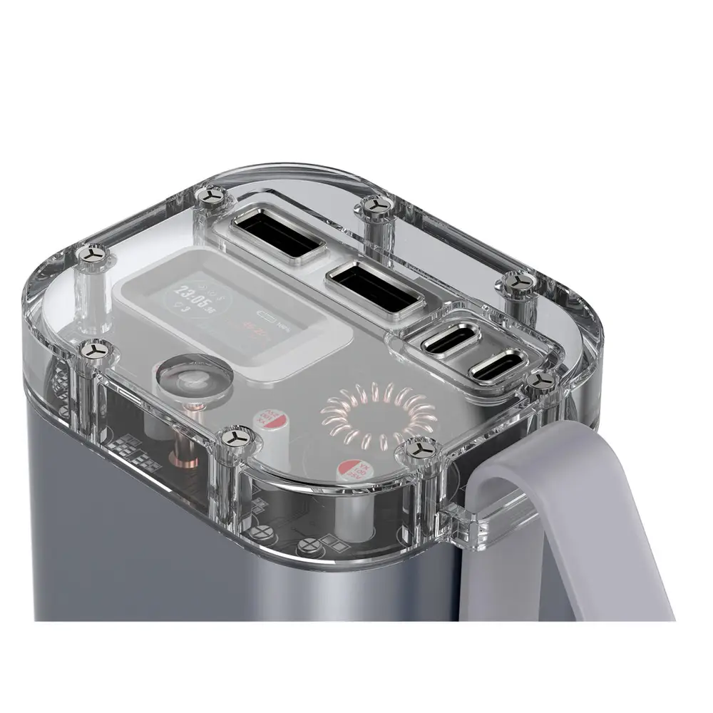 Wenn du darüber nachdenkst, ist diese große Powerbank in vielerlei Hinsicht einzigartig. Sie ist eines der wenigen Modelle, die über ein eingebautes LCD verfügen. Dieses fortschrittliche Display zeigt Echtzeitinformationen wie Spannung, Eingangs- und Ausgangsleistung und Stromstärke auf intuitive Weise an. Du kannst die Temperatur, die Uhrzeit und die verbleibende Batterielebensdauer leicht überprüfen. Das durchdachte Design der Powerstation macht die Batterie unglaublich leicht und wackelfrei für eine so starke Batterie. Die optimierte interne Struktur macht sie so kompakt und einfach zu tragen.
