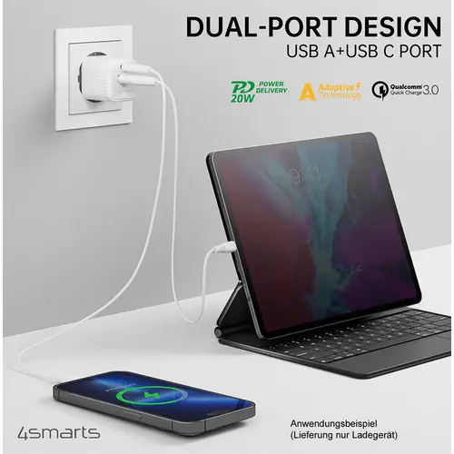 • Duos: Lade 2 Geräte gleichzeitig über USB-C und USB-A