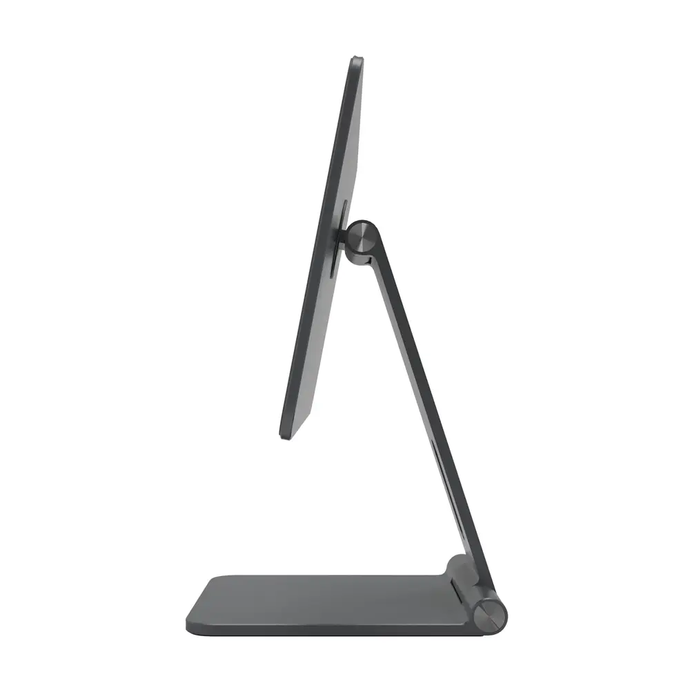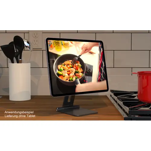 Hauptmerkmale• Entwickelt für eine perfekte Ausrichtung, mit starker magnetischer Anziehungskraft und Schnappbefestigung.• Drehbare Welle mit freiem Anschlag, leicht zu lösen, egal in welchem Winkel sie befestigt ist.• 0-360 Grad rundum verstellbares Gelenk, finden Sie Ihre perfekte bequeme Betrachtungsposition.• Hochwertiges Gestell aus Aluminiumlegierung mit Silikongummipolster, das die Halterung in Position hält.• Kabeldurchführung für einen aufgeräumten und sauberen Schreibtisch.• Sehr vielseitig einsetzbar, geeignet für Arbeit, Spiel, beim Kochen oder sogar beim Malen im Freien.