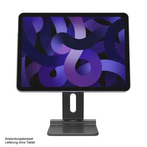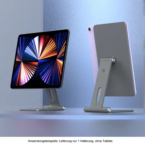 Hauptmerkmale• Entwickelt für eine perfekte Ausrichtung, mit starker magnetischer Anziehungskraft und Schnappbefestigung.• Drehbare Welle mit freiem Anschlag, leicht zu lösen, egal in welchem Winkel sie befestigt ist.• 0-360 Grad rundum verstellbares Gelenk, finden Sie Ihre perfekte bequeme Betrachtungsposition.• Hochwertiges Gestell aus Aluminiumlegierung mit Silikongummipolster, das die Halterung in Position hält.• Kabeldurchführung für einen aufgeräumten und sauberen Schreibtisch.• Sehr vielseitig einsetzbar, geeignet für Arbeit, Spiel, beim Kochen oder sogar beim Malen im Freien.
