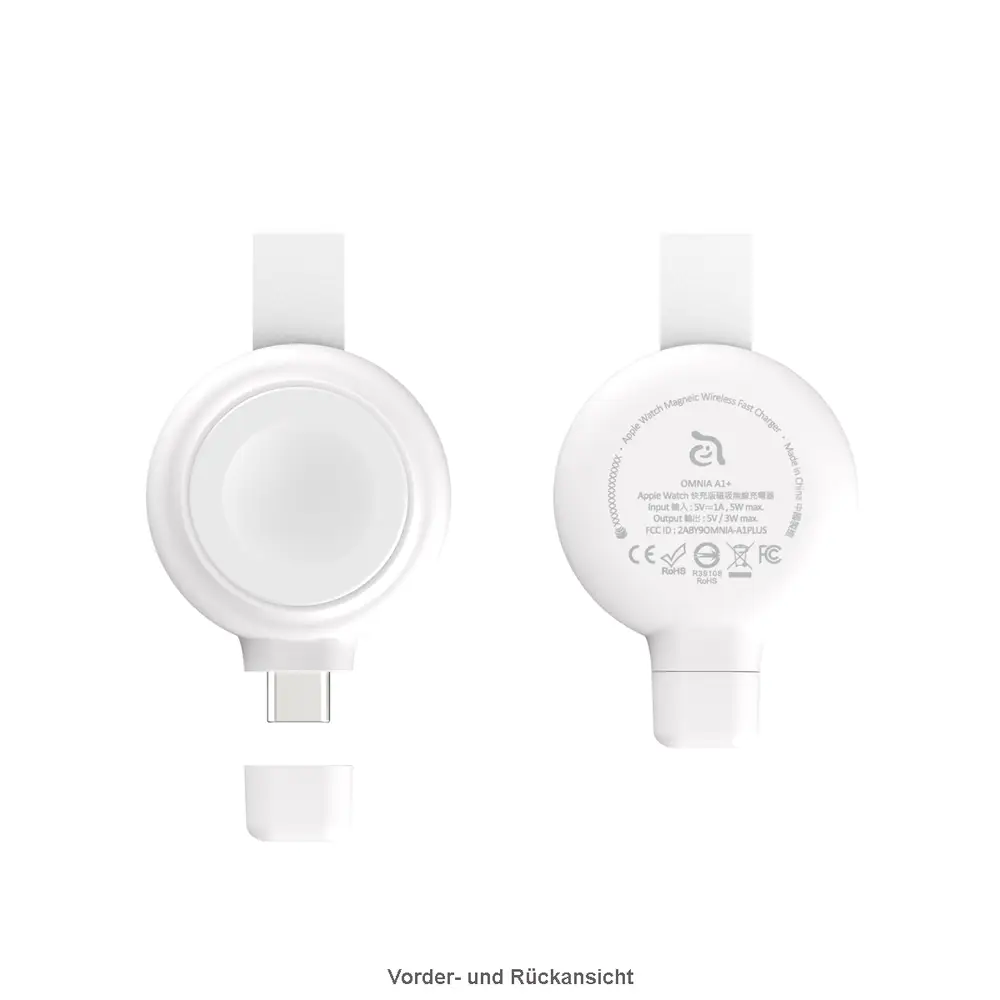 Hauptmerkmale• Made for Apple Watch, OMNIA A1+ ist für Apples Made for Watch (MFW) zertifiziert• Laden Sie Ihre Apple Watch Ultra und die S7/S8-Serie blitzschnell auf.• Kein Durcheinander mehr: Schließen Sie es einfach an einen USB-C-Anschluss mit Stromversorgung an, und los geht's.• So klein und tragbar, dass es praktisch keinen Platz einnimmt, ideal für unterwegs und kurze Reisen.• Der starke Magnet richtet Ihre Apple Watch immer korrekt aus.