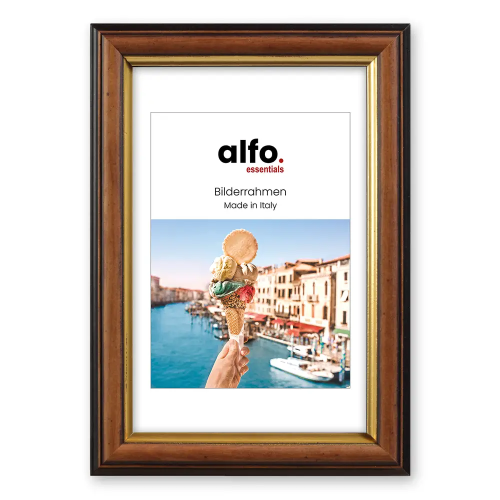 alfo. Ragusa 10x15 cm, braun-gold, mit Ppt., Holzrahmen