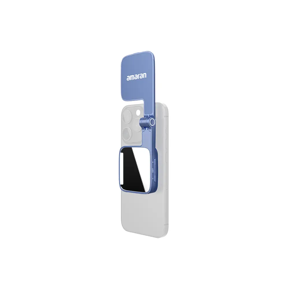 Dank der magnetischen MagSafe-Halterung lässt sich die amaran Go im Handumdrehen direkt am Handy befestigen. Der mitgelieferte MagSafe-Adapter-Sticker macht die Minileuchte an nicht-MagSafe-kompatiblen Geräten wie Laptops fest. Das intuitive Flip-Design erhöht die Flexibilität bei der Erstellung von Inhalten mit der Front- oder der Rückkamera eines Telefons.