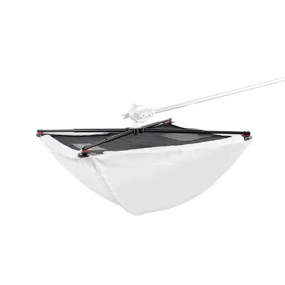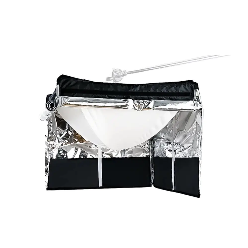 Omnidirektionaler Modifikator. Die Richtwirkung der Laterne für F21 kann auch mit der mitgelieferten, vollständig einstellbaren und abnehmbaren Lichtsteuerungsschürze aus Stoff verändert werden. Die Schürze deckt alle vier Kanten der Laterne ab und kann unabhängig voneinander aufgerollt werden, um die Richtwirkung des Scheinwerfers zu maximieren und Streulicht zu vermeiden.