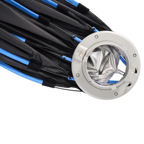Dank seines universellen Bowens Mounts ist der Light Dome 120 mit einer Vielzahl von Bowens Mount-Scheinwerfern bis zu 600 Watt Leistung kompatibel. Durch einfaches Ziehen am Speed-Ring-Griff wird der Octa Dome 120 im Handumdrehen in seine achteckige Form gebracht. Das macht den Auf- und Abbau dieser Softbox schneller und einfacher denn je.