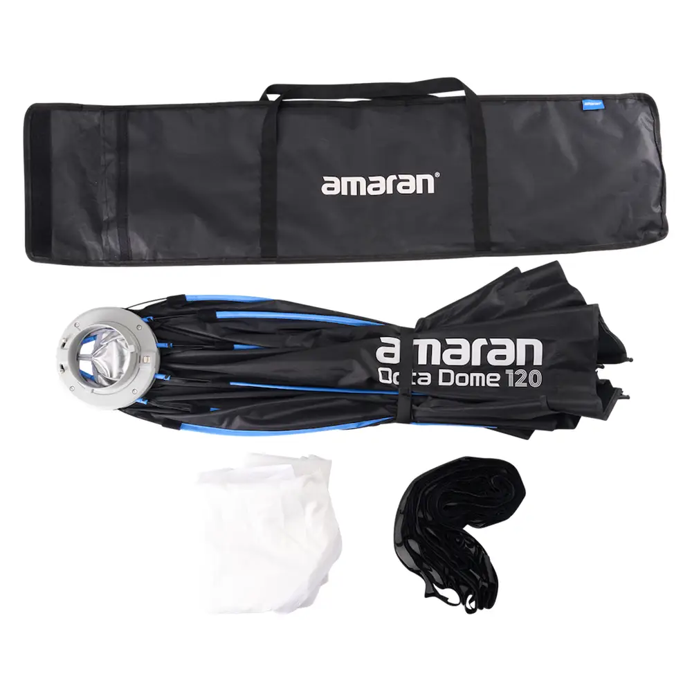 Für die Lagerung oder für unterwegs lässt sich der Octa Dome 120 zu einem schlanken, flachen Profil zusammenklappen – ideal für Heimstudio-Betreiber, die auf minimales Packvolumen und maximalen Komfort bei der Lagerung Wert legen. Mit lediglich 1,2 kg Gewicht wird der Transport dieser Softbox zu einem Kinderspiel.
