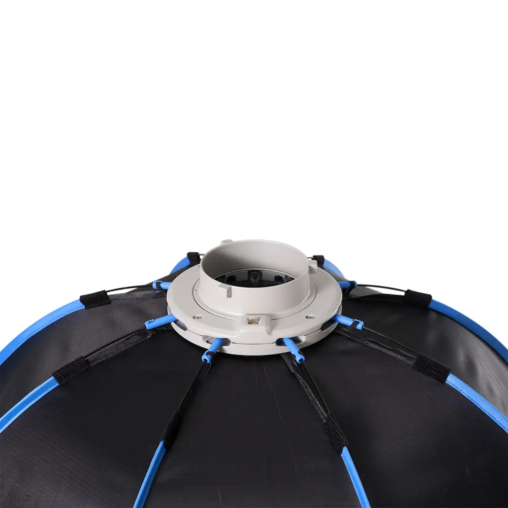 Dank seines universellen Bowens Mounts ist der Light Dome 90 mit einer Vielzahl von Bowens Mount-Scheinwerfern bis zu 600 Watt Leistung kompatibel. Durch einfaches Ziehen am Speed-Ring-Griff wird der Octa Dome 90 im Handumdrehen in seine achteckige Form gebracht. Das macht den Auf- und Abbau dieser Softbox schneller und einfacher denn je.