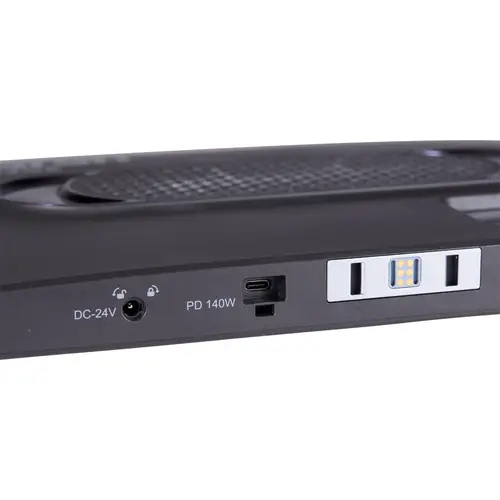 Für kabellose, mobile Setups lässt sich die amaran Ace E-Lock-Schnellwechselhalterung mit der (optional erhältlichen) amaran Peak1-Powerbank verbinden, die an jedem Ort Strom bei voller Kapazität ohne Spannungsabfall liefert.