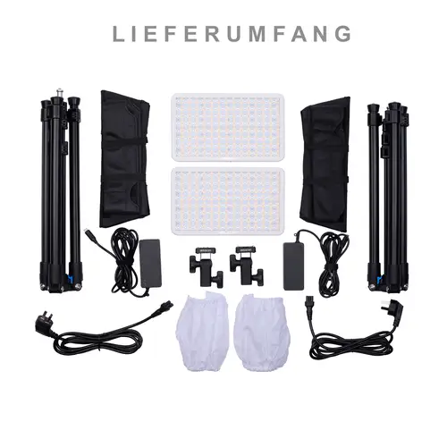 Das gesamte Set ist in einer 2-Light Kit Tragetasche für Transport und Aufbewahrung verpackt. Mit einem Gesamtgewicht von lediglich rund 4,3 kg lässt es sich leicht transportieren, montieren und positionieren - perfekt für mobile Außenaufnahmen, enge Räumen oder für Studioaufbauten vor Ort.