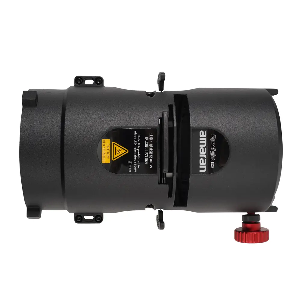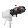 Passen Sie Ihre Beleuchtung mit der 36°-Linse an Ihre Bedürfnisse an. Verwenden Sie die 19°-Linse, um die Lichtleistung auf einen engeren Bereich mit größerer Reichweite zu bündeln. Mit den vier eingebauten Metallblenden können Sie den Lichtkegel des Spotlight SE schnell und präzise beschneiden und verschiedene Winkel einstellen. Darüber hinaus können Sie die Form mit den 15 mitgelieferten Gobos der Größe M und der optional erhältlichen 18-Blatt-Blende punktgenau verändern.