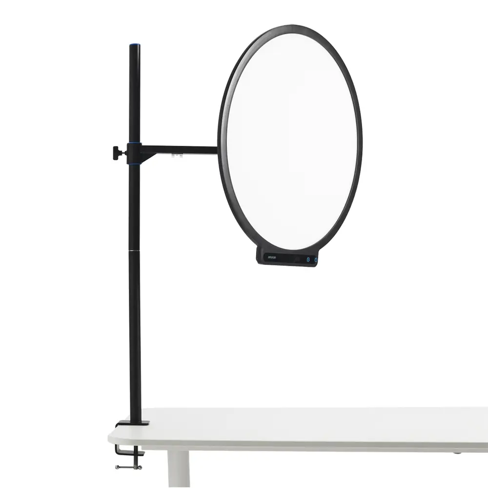 Die amaran Verge Max lässt sich problemlos an jede kreative Umgebung anpassen: Mit dem Desk Clamp Stand (im Lieferumfang enthalten) wird sie zum Beispiel am Schreibtisch befestigt oder an einem klassischen Lichtstativ für kompakte Studioaufbauten montiert. Dank des unsichtbaren amaran Verge-Lock-Montagesystems werden präzises Schwenken und Neigen zum Kinderspiel. Dabei bleibt das Setup clean und übersichtlich.