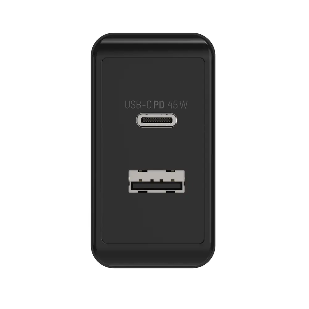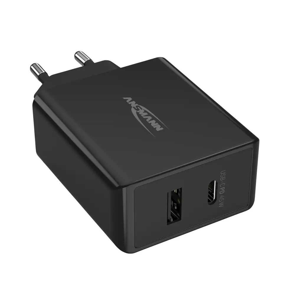 USB-PD-Ladegerät von ANSMANN mit GAN-Technologie mit 2 USB-Ports und einer Leistung von max. 45 W. Die ideale Ladelösung für anspruchsvolle Anwendungen, wie z.B. das ultra-schnelle laden und betreiben von kompatiblen Laptops oder Powerbanks. Abwärtskompatibel zu allen USB Ladeanwendungen.
