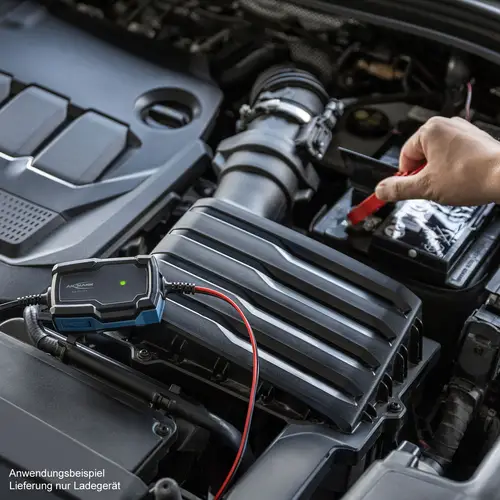 Lieferumfang: Ladegerät, Polklemmen, Ringkabelschuhe, Bedienungsanleitung