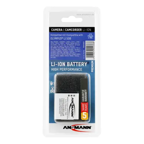 Ob als Ersatzakku oder als kostengünstiger Reserve-Akku zum Austauschen Ihres Original-Akkus – mit dem Qualitätsakku von ANSMANN haben Sie die absolute Gewissheit, kein Motiv oder Schnappschuss mehr zu verpassen. Die hohe Kapazität und besonders lange Lebensdauer der ANSMANN Akkus ermöglichen Ihnen lange Freude an energieintensiver Technik. Die integrierte Schutzelektronik bietet einen umfassenden Schutz vor Überladung, Überspannung und Kurzschlüssen. Neben dem hervorragenden Preis-Leistungsverhältnis überzeugt der Akku ebenfalls durch seine Passgenauigkeit.Technische Daten Zellchemie Lithium-Ion Spannung 3.7 V Nominal-Kapazität 730 mAh Energiegehalt 2.7 Wh Verpackung Blister Original-Hersteller Olympus Ersetzt Olympus LI-50B Kompatibilität Olympus Mju 1010/1020/1030 SW/1060/9000/9010, Olympus Mju Tough 6000/6010/6020/8000/8010/9000, Olympus SH-21/SH-25MR, Olympus SP-720 UZ/ SP-800 UZ/ SP-810 UZ, Olympus SZ-10/ SZ-11/ SZ-14/SZ-20/SZ-30MR/ SZ-31MR, Olympus TG-2/ TG-610/ TG-620/ TG-630/ TG-81