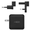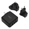 Das Gerät verfügt über einen einklappbaren US Stecker, wodurch es sehr kompakt und Platzsparend in jede Tasche passt. Die Wechselstecker für UK und EU werden einfach auf den eingeklappten US Stecker aufgeschoben. So sind sie in den meisten Ländern der Welt in Sekunden am örtlichen Stromnetz angebunden und können bis zu 3 USB-Geräte wie gewohnt gleichzeitig laden.