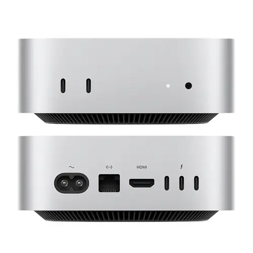 Der viel leistungsstärkere, viel kleinere Mac mini: 12,7 x 12,7 cm, Das neue Design wurde rund um den Apple Chip entwickelt, um die Geschwindigkeit und das Potential des spektakulären M4 Chip optimal zu nutzen. Mit praktischen Anschlüssen auf Vorder- und Rückseite.