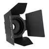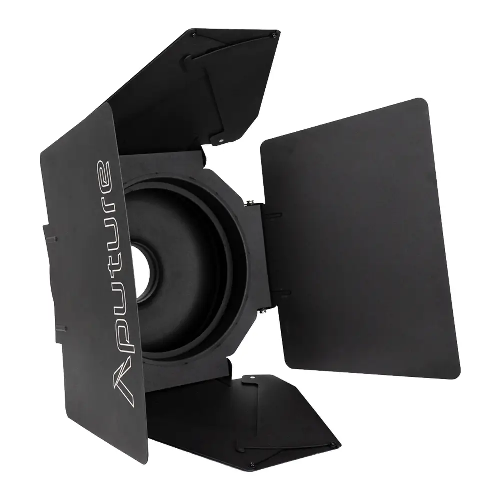 Die F10 Barn Doors von Aputure sind ein Zubehör zum Lichtformen zur Nutzung mit den größeren Bowens-Mount-Leuchten und Fresnellinsen. Die Barn Doors sind kompatibel mit Aputures F10 Fresnel sowie dem mitgelieferten schwarzen Reflektor, dem Negative Reflector.Die F10 Barn Doors nutzen ein großes, 8-blättriges Design, um das Licht der großen 10-Zoll-Öffnung gekonnt zu formen. Der schwarze Reflektor, der zum Lieferumfang gehört, eignet sich ideal für Nutzer, die ihr Licht präzise und sauber formen möchten. Indem die Größe der Lichtquelle minimiert wird und jedes Material vermieden wird, dass die Blendenöffnung der LED vergrößern könnte, erzeugen die F10 Barn Doors noch schärfere Schatten.Anstatt einer Wire-Clamp-Mechanik, wie sie von vielen kleineren LED-Barn-Doors genutzt wird, verwenden die F10 Barn Doors einen verriegelnden Schwerlastmechanismus, der auch widrigen Umständen standhält. Die F10 Barn Doors besitzen zudem ein Safety Cable und einen Anbringpunkt für maximale Sicherheit.Diese Barn Doors sind das Zubehörteil von industrieller Qualität, auf das der modulare LED-Markt gewartet hat.Features:• Kompatibel mit Aputure F10 Fresnel: Die größeren Scheunentore eignen sich besser für das Formen von Licht aus großen Lichtquellen.• 8-blättrige, anpassbare Barn Doors: Große Blätter mit zusätzlichen Helferflaggen ermögliches präzise Lichtegstaltung.• Mit Safety Cable: Kabel und Anbringpunkt an der Leuchte für zusätzliche Sicherheit• Black Reflector Dish: Der mitgelieferte schwarze Reflektor besitzt den gleichen Zubehörslot wie das F10 Fresnel, wodurch die F10 Barn Doors direkt an jedem Bowens Mount angebracht werden können.• Schärfere Schnitte: Die Kombination der größeren Scheunentore mit der schwarzen Reflektorscheibe minimiert die Größe der Lichtquelle und erlaubt schärfere Lichtformen als die meisten anderen LED-Barn-Doors.• Kompatibel mit Bowens Mount LED-Leuchten wie der Aputure LS 600d Pro, 300d II, 300x, 120d II etc.• Robuste Konstruktion: Die F10 Barn Doors sind äußerst beständig, hergestellt aus schwarzem pulverbeschichteten ALuminium und mit Laser-gravierten Logos.Lieferumfang:1x F10 Barn Doors1x F10 Barn Doors Black Reflector Dish1x Sicherheitskabel