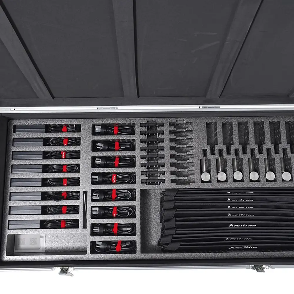Die INFINIBAR PB6 8-Light Kit enthält acht dieser Aputure-Pixelleisten mit jeweils 60 cm Länge und 48 individuellen RGB-Pixel-Lichtzonen. Zu deren Besonderheiten gehört die Möglichkeit, mehrere INFINIBARs variabler Längen über unterschiedlich geformte Verbindungsstücke* zusammenzuschließen und so kreative Formen und Effekte zu erschaffen. Die Lücken dieser Verbindungen werden durch das integrierte, stufenloses Blending Design optisch weitgehend eliminiert. Die 48 RGB-Pixel-Lichtzonen bieten damit nahtlose Pixel-Effekte.