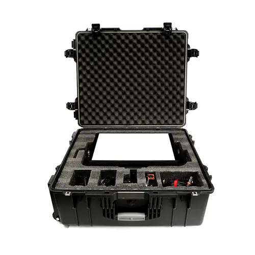 Das Nova P300c Kit enthält ein spezielles Hartschalen-Rollgehäuse für das Gerät, das es selbst den härtesten Filmset-Umgebungen standhält.