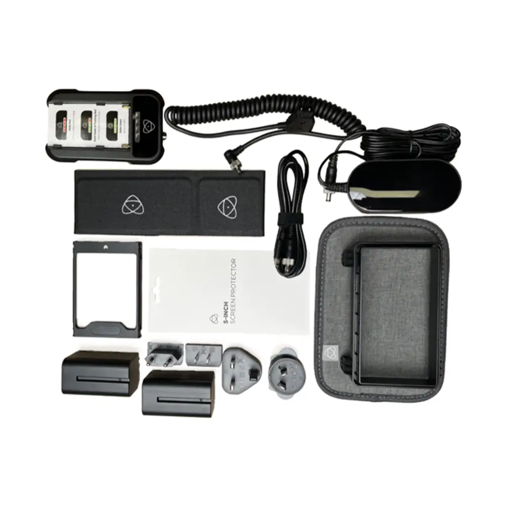 Lieferumfang1x Sonnenblende1x Displayschutz1x DC Netzteil1x Schnellladegerät2x NP-F750 5200 mAh Batterie1x Neoprene 5-inch-sleeve1x USB C to 2.1mm DC PD Powercable 2m1x Coiled Dtap to 2.1mm DC Powercable 2m1x Master Caddy III1x EVA Case