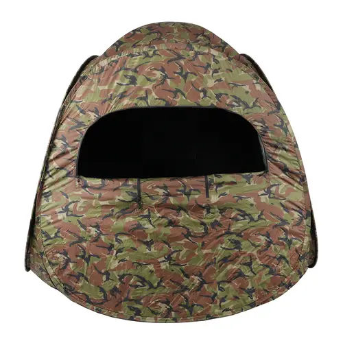 ProduktmerkmaleFarbe: CamouflageMaterial: Kunststoff 210D, NylonAußenmaß (LxBxH): ca. 170x170x170cmInnenmaß (LxBxH): ca. 165x165x165cmBeobachtungsfenster Größe (BxH): ca. 37x37cmBoden bis Unterkante Beobachtungsfenster: ca. 69cmPanoramafenster Größe (BxH): 103x34cmTür Größe (BxH): 90x110cmDurchmesser Tasche: ca. 60cmGewicht: ca. 4,6kg