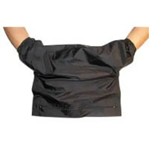 An der gegenüberliegenden Seite ist eine große Reißverschluss-Öffnung, die das Hineinlegen von Planfilmkassetten, Filmpackungen oder eben (bei Filmriss) der kompletten Kamera erlaubt.