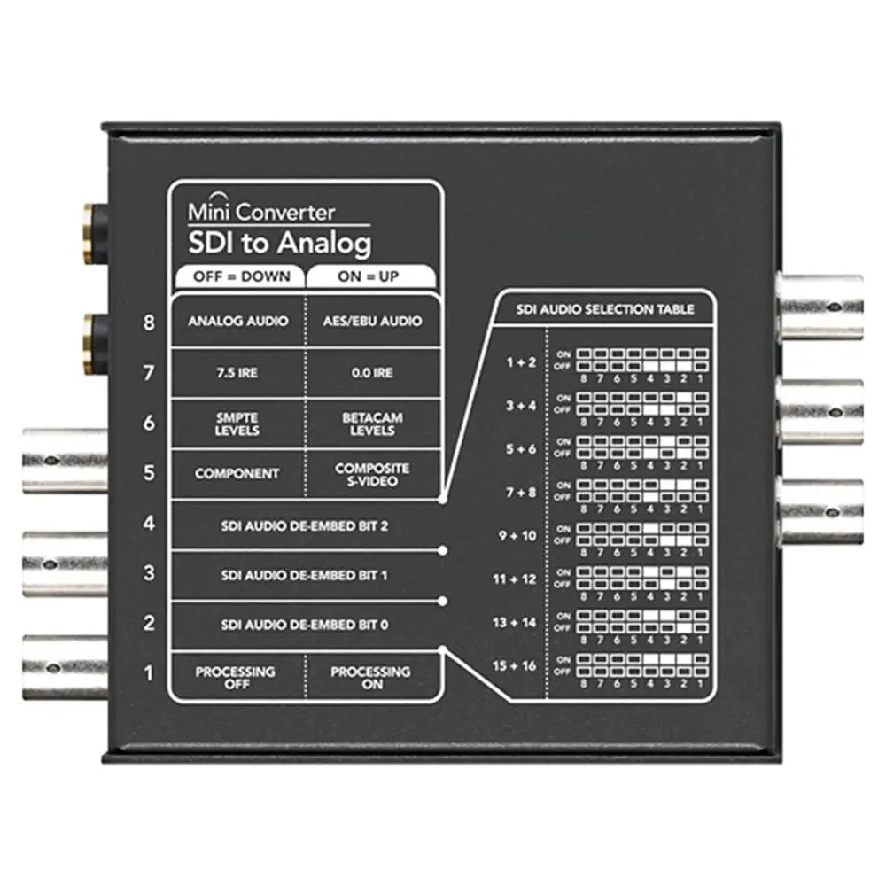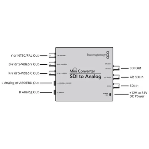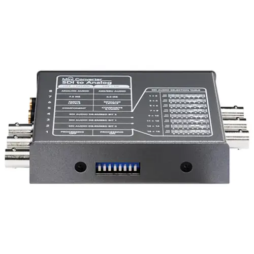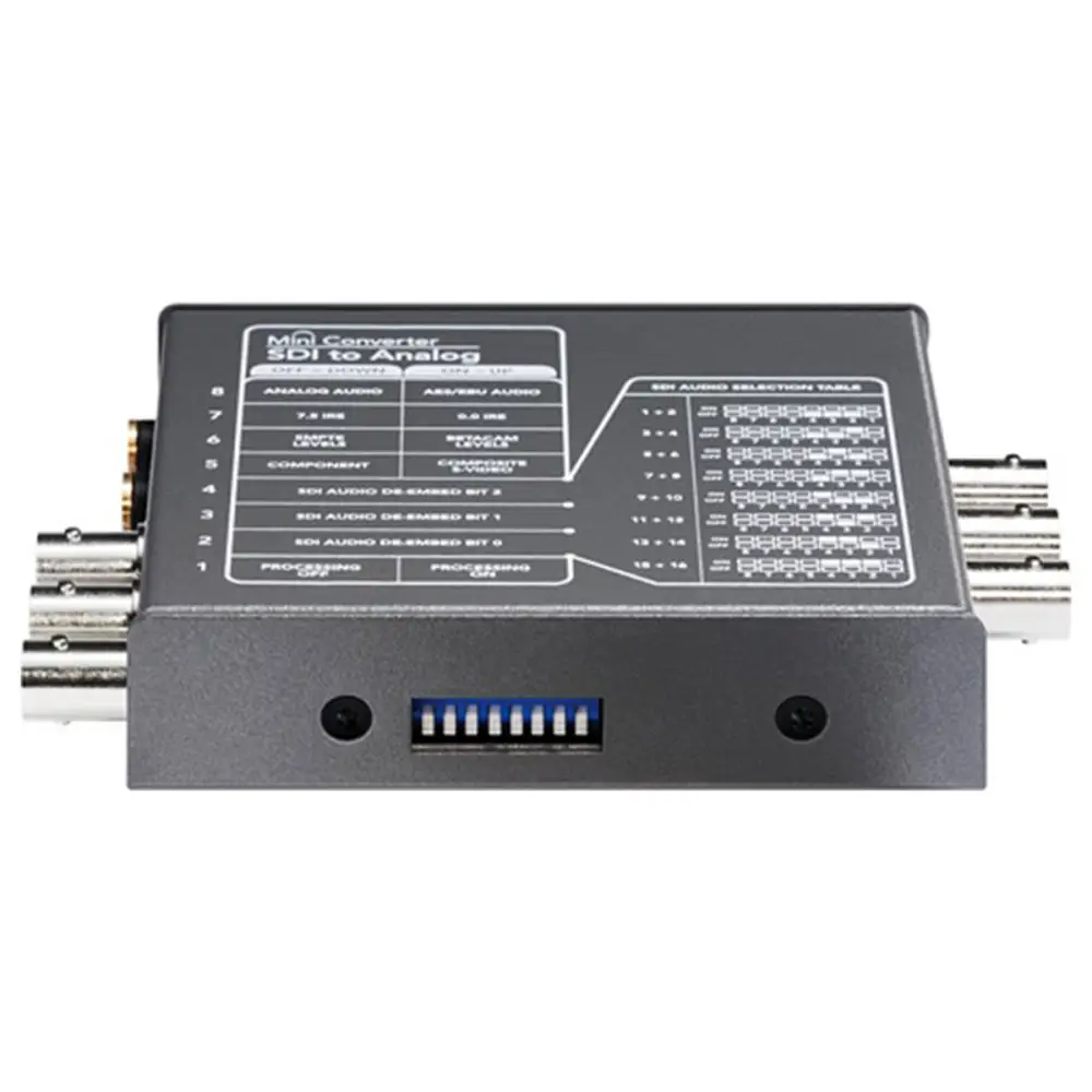 Der Mini Converter SDI to Analog unterstützt alle SD- und HD-Eingabeformate bis zu 1080p/60und bringt einen Downkonverter mit. So können Sie auch von HD in analoge Standard Definition Formatewie S-Video und FBAS umwandeln.