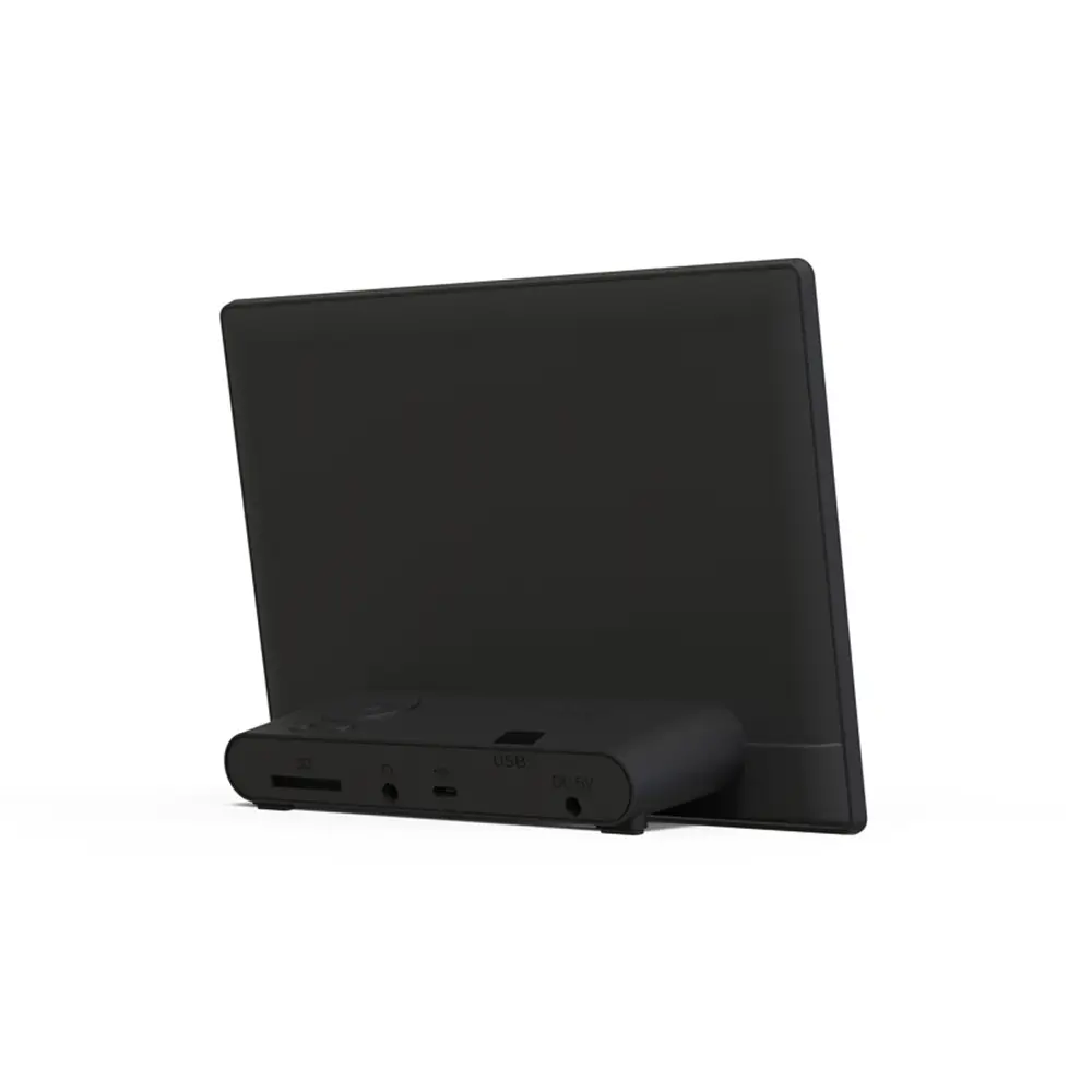 Der BRAUN DigiFrame 81 Slim ist ein formschöner digitaler Bilderrahmen im Slim Design mit einem großen 20,3 cm (8") IPS-Display zur Wiedergabe Ihrer digitalen Bilder, Musikdatien und Videoclips (bis 1080p). Der Bilderrahmen enthält ein IPS-Display mit LED-Hintergrundbeleuchtungstechnologie sowie einen eingebauten Lautsprecher (1 x 1W) und einen Kopfhöreranschluss (3,5 mm Klinkenstecker).