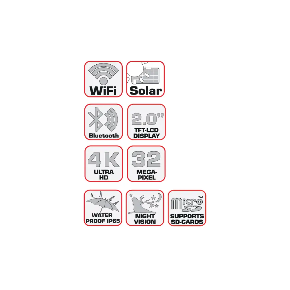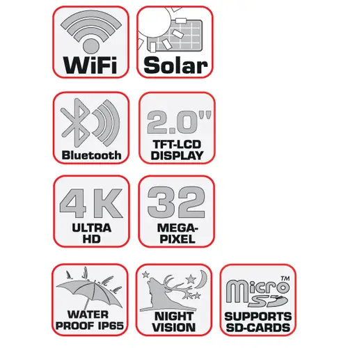 Neben einem Solar Panel zur umweltbewussten Stromversorgung, verfügt die Scouting Cam Black300 WiFi Solar 4K Mini auch über WiFi und Bluetooth. Videos können sogar in hoher 4K-Ultra-HD-Auflösung aufgenommen werden, während Fotos mit einer Bildauflösung bis zu 32 MP gute Ergebnisse liefern. Das integrierte WiFi-Modul ermöglicht eine direkte Verbindung von Kamera zum Smartphone. Über die kostenlose App lassen sich die Aufnahmen anschauen, herunterladen und löschen. Das lästige Entnehmen der Speicherkarte ist nicht mehr nötig. Die App ermöglicht ebenfalls eine Live-Vorschau mit Möglichkeit der manuellen Bild- und Videoaufnahme. Neben dem bequemen Datentransfer lassen sich mittels der WiFi-Verbindung und App auch die Systemeinstellungen der Wildkamera verwalten.
