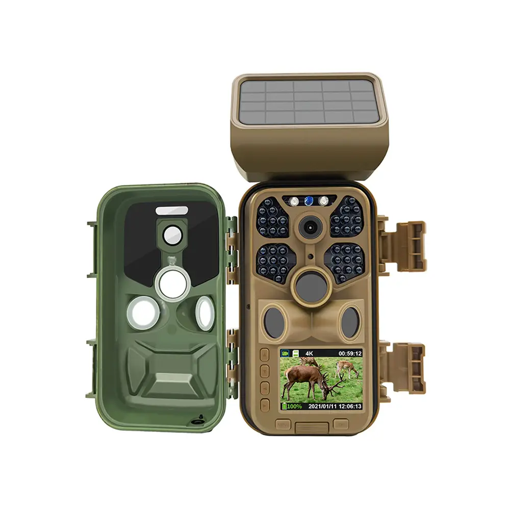 Dank der verbauten Black LEDs und des 4MP CMOS Bildsensors lassen sich sowohl hochwertige Tag- wie auch exzellente Nachtaufnahmen realisieren. Die Aufnahmen können auf einer SD-Speicherkarte mit bis max. 32GB gespeichert werden. Darüber hinaus verfügt die Wildkamera auch über einen Mini USB-Slot zum Anschluss an PC und TV, AV Out (NTSC/PAL) sowie einen USB-C-Slot zum Anschluss des Solarpanels.