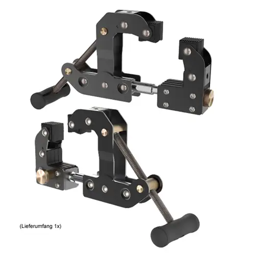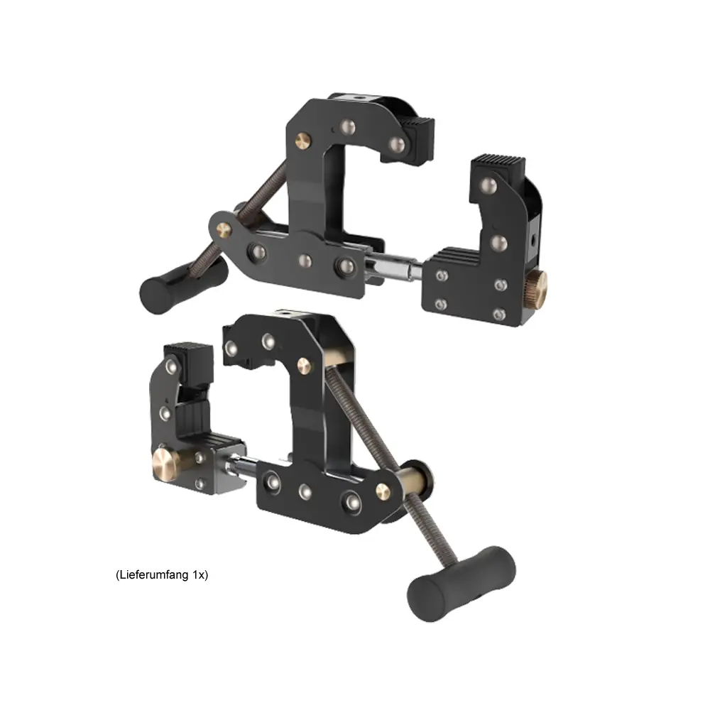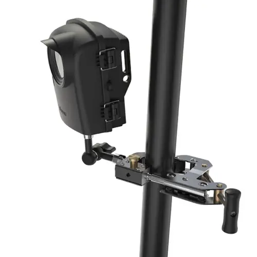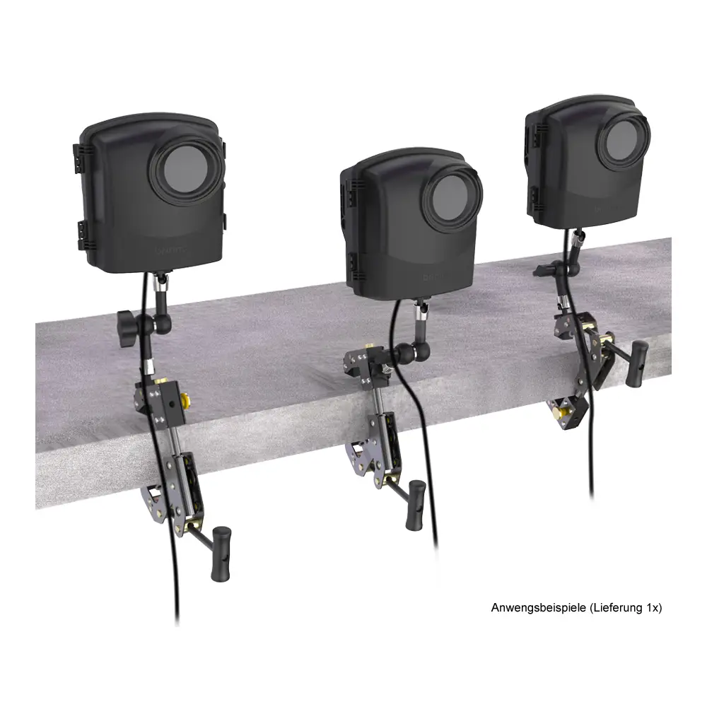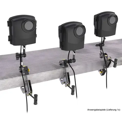 Die einstellbare Kamerahalterung in Industriequalität kann auf Stärken von mindestens 1 mm bis maximal 90 mm eingestellt werden. Die Halterung fixiert die Kamera fest und sicher und kann an jedem Objekt auf der Baustelle befestigt werden.