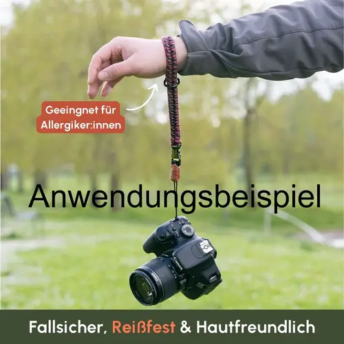Du willst Deine Kamera immer griffbereit haben? Auch als „Tragegurt“ fürs Handgelenk eignet sich die Handschlaufe ideal.  Besonders für leichte DSLR- und Spiegelreflexkameras.