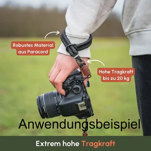 Du willst Deine Kamera immer griffbereit haben? Auch als „Tragegurt“ fürs Handgelenk eignet sich die Handschlaufe ideal.  Besonders für leichte DSLR- und Spiegelreflexkameras.