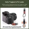 Du kannst den Gurt an allen Kameratypen befestigen, wie z.B. Spiegelreflex-, System- und Digitalkameras von Canon, Nikon, Sony, Fujifilm, Panasonic und Olympus.