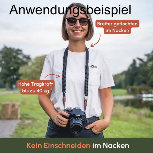 Paracord wird überall da genutzt, wo Sicherheit und Zuverlässigkeit überlebenswichtig sind. Beim Fallschirmspringen. Beim Bergsteigen. Beim Camping. Und jetzt auch bei Deiner Kamera.