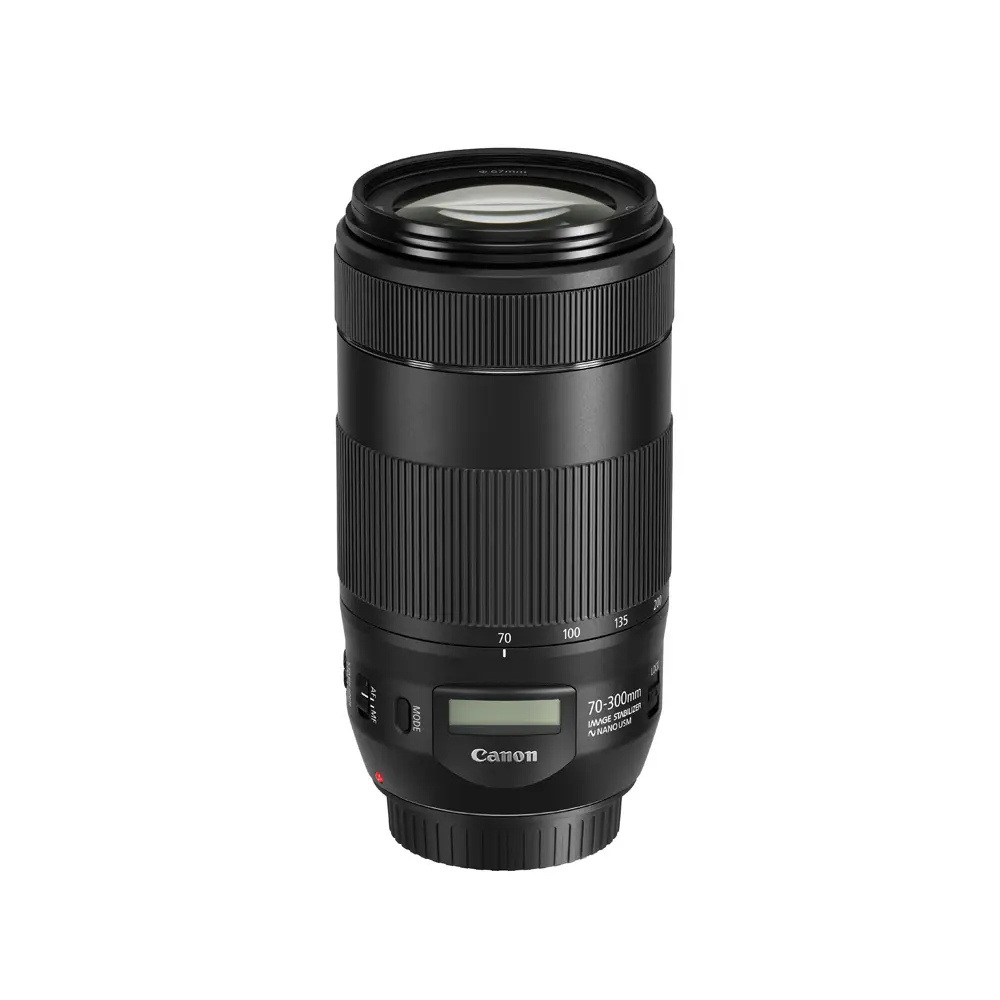 Entfernte Motive nah heran holenDie maximale Telebrennweite von 300 mm ermöglicht die formatfüllende Abbildung weit entfernter Motive. Damit ist das Objektiv eine ideale Ergänzung zu Ihrem Standard-Kit-Objektiv und erweitert Ihre fotografischen Möglichkeiten.Leistungsstarke FokussierungDer Nano USM ermöglicht die schnelle, gleichmäßige und leise Fokussierung Ihres Motivs. Damit ist das Objektiv ideal zum Fotografieren sich schnell bewegender Motive und auch für Videoaufnahmen, die nicht durch Motorgeräusche gestört werden und sich durch natürlich wirkende Fokusübergänge auszeichnen.Überzeugende AbbildungsqualitätDie praktisch kreisrunde 9-Lamellen-Irisblende hilft beim gezielten Einsatz einer attraktiven Hintergrundunschärfe (Bokeh) zur Freistellung eines Motivs. Eine spezielle UD-Linse in der Objektivkonstruktion hilft bei der Reduzierung chromatischer Aberrationen für eine erstklassige Abbildungsqualität über den gesamten Brennweitenbereich.Immer informiert über das integrierte Objektiv-DisplayEin innovatives Display oben auf dem Objektiv zeigt selbst bei schwachem Umgebungslicht die Objektivinformationen auf einen Blick an. Das ist extrem hilfreich, wenn man im Live View Modus Videos aufnimmt, da man damit sicherstellt, dass keine Erschütterungen einwirken und zudem den Fokussierabstand und die Schärfentiefe bei verschiedenen Blendenöffnungen prüfen kann.Leicht und kompaktMit einem Gewicht von nur ca. 710 g und einer Länge von 14,55 cm im eingezogenen Zustand ist das EF 70-300 mm 1:4-5,6 IS II USM ideal bei eingeschränktem Platz und auf Reisen.Weiterentwickeltes optisches DesignDie hervorragende Optik mit UD-Linse (Ultra low dispersion) ermöglicht selbst bei anspruchsvollen Aufnahmebedingungen eine hohe Bildqualität mit hervorragendem Kontrast und hoher Auflösung.Verbesserter Bildstabilisator Der Bildstabilisator im EF 70-300 mm 1:4-5,6 IS II USM kompensiert Kamerawackler und ermöglicht so eine bis zu 4 Stufen längere Belichtungszeit als ohne Stabilisierung, um eine gestochen scharfe Aufnahme zu erhalten.Technische Daten• Telezoom-Objektiv mit 70-300 mm Brennweite• Lichtstärke 1:4-5,6• Nano USM-Motor• Bildstabilisator 4-Stufen• Integriertes Objektiv-Display• Asphärische UD-Linse (Ultra low dispersion)• Filter-Durchmesser: 67 mm• Bildwinkel (hor., vert., diag.): 29º- 6º 50', 19º 30'- 4º 35', 34º- 8º 15'• Optischer Aufbau: 17 Linsen in 12 Gruppen• 9 Blendenlamellen• Kleinste Blende: F32-45 (Kleinste Blende bei Drittelstufen)• Naheinstellgrenze: 1,2 m• Größter Abbildungsmaßstab: 0,25 (bei 300 mm)• Abstandsinformation: ja• Staub-/Spritzwasserschutz: nein• Extender EF 1,4fach II und EF 2fach II: nicht kompatibel• Durchmesser x Länge: 80 x 145,5 mm• Gewicht: 710 gLieferumfang1x EF 70-300 mm f/4-5,6 IS II USM1x Objektivdeckel E1x Objektivdeckel E-67II