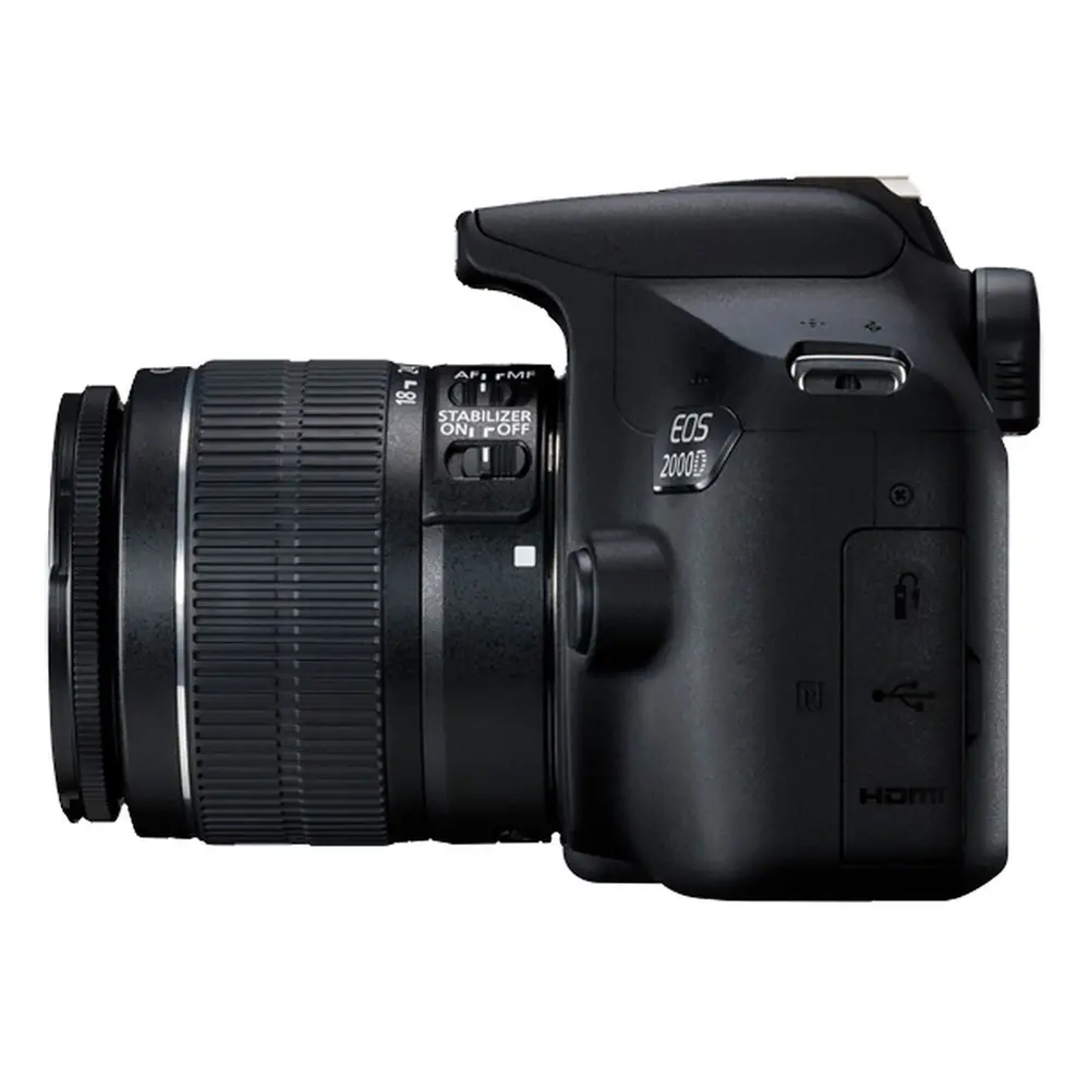Gehen Sie die ersten Schritte in der DSLR-Fotografie und erzählen Sie Geschichten mit der EOS 2000D und dem kompakten Zoomobjektiv EF-S 18-55mm IS II. Diese einfach und intuitiv bedienbare Kamera ist ideal für Einsteiger. Die Photo Companion App bietet Tipps und Tutorials um das Beste aus der Kamera herauszuholen: für wunderschöne Fotos und kinoähnliche Full-HD-Videos voller Details, Farben und Tiefe zusätzlich zu den großartigen Low-Light-Eigenschaften des 24,1-Megapixel-Sensors und dem Allround-Zoomobjektiv. Einfach per WLAN¹ und NFC² verbinden und schon kann man mit der Canon Camera Connect App die Aufnahmen über soziale Medien teilen oder die Kamera per Mobilgerät fernbedienen.Vorteile • Detailreiche Aufnahmen bis in die Nachtstunden dank 24,1-Megapixel-Sensor, der bis zu 19-mal größer ist, als viele Smartphones³ • Das EF-S 18-55mm f/3.5-5.6 IS II Objektiv ermöglicht Aufnahmen vom Weitwinkel- bis zum Telebereich • Die Ergebnisse lassen sich sofort auf dem 6,8 cm (2,7 Zoll) großen LCD betrachten • Dank NFC² verbindest du die Kamera ganz einfach per Berührung mit kompatiblen Mobilgeräten • Schneller Autofokus und Reihenaufnahmen mit bis zu 3 B/s bei voller Auflösung – für großartige Ergebnisse musst du das Motiv nur anvisieren und auslösen • Erweitere deine fotografischen Möglichkeiten mit einem großen Angebot an Wechselobjektiven und umfangreichem Zubehör • Mit einer ISO-Empfindlichkeit von ISO 100-6400 (erweiterbar auf ISO 12800) kannst du auch bei Nacht beeindruckende Bilder aufnehmen • Sieh die Welt durch den optischen Sucher und erkunde die Möglichkeiten von Wechselobjektiven • WLAN¹ zum Teilen der Aufnahmen über Soziale Medien oder zum Backup auf irista • Mit der Fernsteuerung kannst du tolle Selfies oder Bilder aus ungewöhnlichen Blickwinkeln aufnehmen • Einfach verständliche Anleitungen findest du in den kamerainternen Erläuterungen zu den Funktionen und der kostenlos zum Download verfügbaren Photo Companion App (für Android und iOS)¹ WLAN-Konnektivität und -Funktionalität kann je nach Region und eingesetztem Gerät variieren. Es werden nicht alle Funktionen oder Geräte unterstützt: siehe vollständige technische Daten für weitere Informationen. ² Kompatible Android-Geräte mit NFC-Unterstützung. ³ Bei gängigen Smartphones mit 1/2,5 bis zu 1/3-Zoll-Typ-Sensoren. Basierend auf Canon Untersuchungen.Technische Daten • 24,1 Megapixel • Automatische Motiverkennung • 9-Punkt-AF • Kreativfilter • WLAN¹/ NFC² • 7,5 cm (3,0 Zoll) LC-Display • Erläuterungen • Full-HD-Videos Lieferumfang • Canon EOS 2000D Gehäuse • EF-S 18-55mm f/3.5-5.6 IS II Objektiv • Augenmuschel Ef • Trageriemen EW-400D • Akku LP-E10 • Akkuladegerät LC-E10E • Netzkabel für Akkuladegerät • Handbuch Erste Schritte