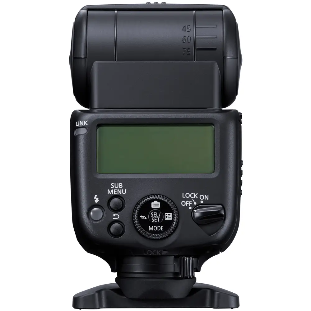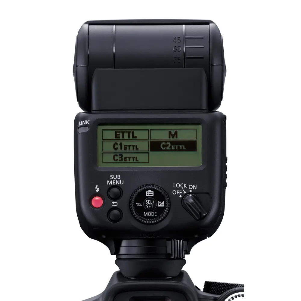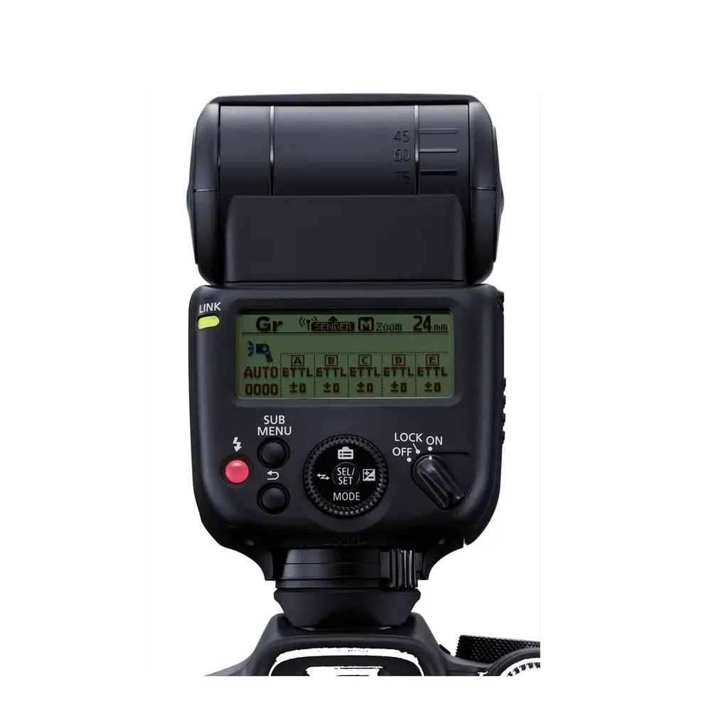 Produktmerkmale• Leitzahl 40/ Bis zu 20 Meter Reichweite bei ISO 100 und F2.0• Blitzleisung manuell von 1/1 bis 1/1024 einstellbar• Intelligent und Intuitiv• Einstellungen lassen sich direkt auf dem Kameradisplay anpassen• Bis zu drei benutzerdefinierte Modi lassen sich einstellen• Die Kamera und Blitz lassen sich aus der Ferne über die Canon Camera Connect App bedienen• Aufhellblitzen mit High Speed Sync für selektive Schärfe bei offener Blende und kurzer Verschlusszeit• Ein vielseitiger Leistungsbereich von 1/1 bis 1/1024 sorgt für einen anpassbaren Look• ein Catchlight-Panel für ein zusätzliches Funkeln in den Augen• Volle Ladung in nur 1,5 Sekunden mit Standard AA Batterien• 287 g• 21 Pin Multifunktionsschuh• Vertikal bis 90°, links bis 150° und rechts bis 180° schwenkbar• Transmitter/Receiver-Funktion für kabelloses Blitzen per Funk in 5 Gruppen über 15 Kanäle• Costum flash Modi