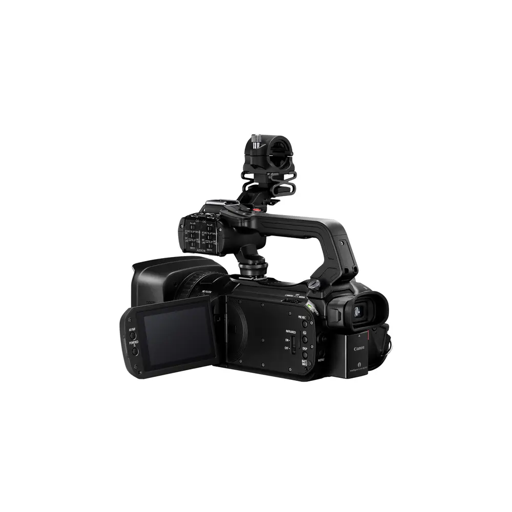 Lieferumfang: Streulichtblende mit integriertem Objektivschutz, Mikrofonhalter, Tragegriff HDU-1, Akku BP-820, USB-Netzadapter PD-E1, Netzkabel