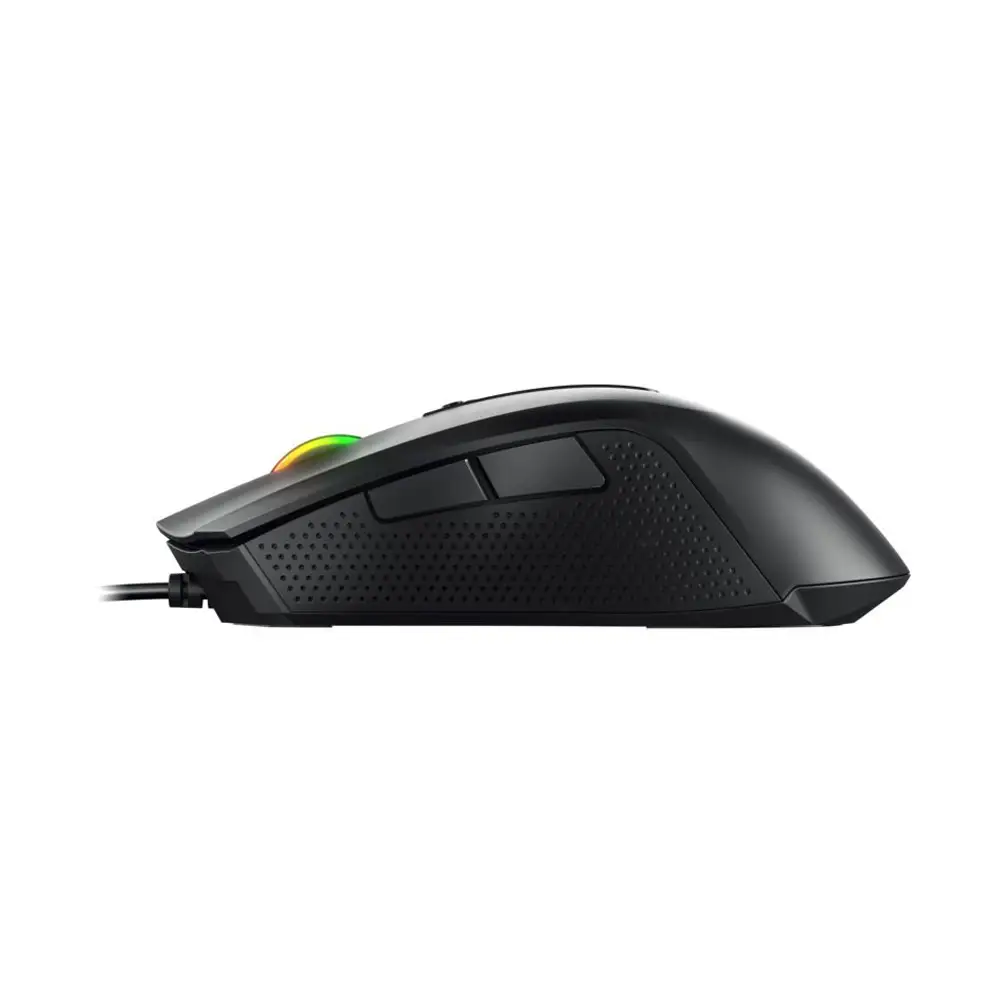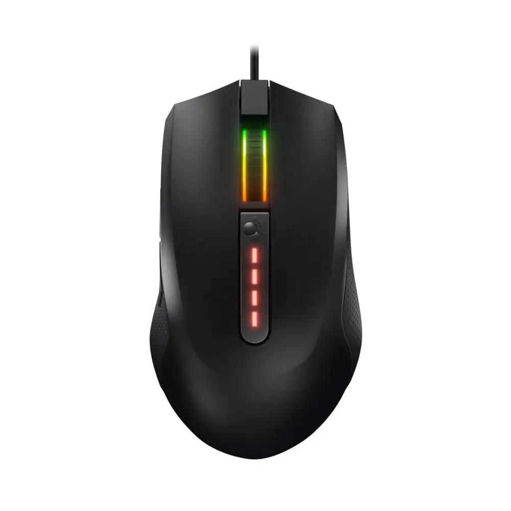Ein besonderer Hingucker ist das gummierte, transluzente Mausrad mit Fühlrippen für bestmöglichen Grip. Da es transparent ist, kommt das ganze Farbspektrum mit 16,8 Millionen Farben (RGB) und verschiedenen Beleuchtungseffekten voll zur Geltung. Den präzisen 5000 dpi Pixart Sensor können Sie stufenweise, direkt über den dpi-Schalter auf der Maus einstellen.