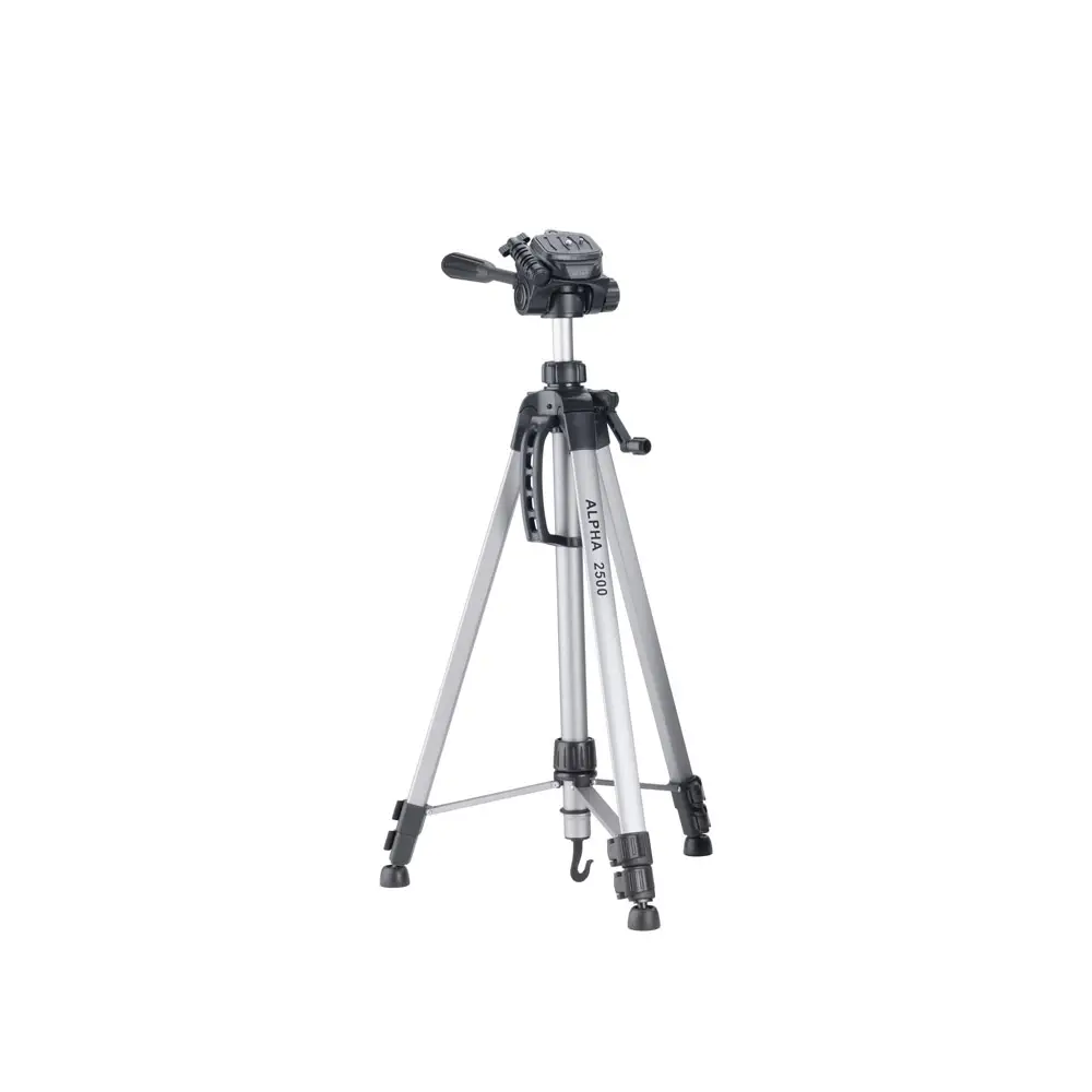Das Universalstativ ALPHA 2500 überzeugt durch eloxiertes Aluminiumrohr für Stativbeine und Kurbelsäule, durch eine zuverlässige Stativbeinklemmung und durch einen kompakten 3-Weg-Panoramakopf mit Schnellkupplungssystem. Für den sicheren Transport des ALPHA 2500 gehört ein gepolstertes Stativetui zum Lieferumfang.