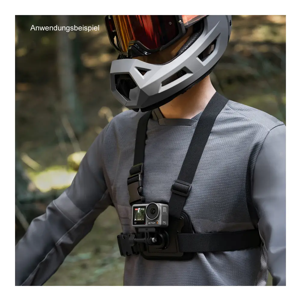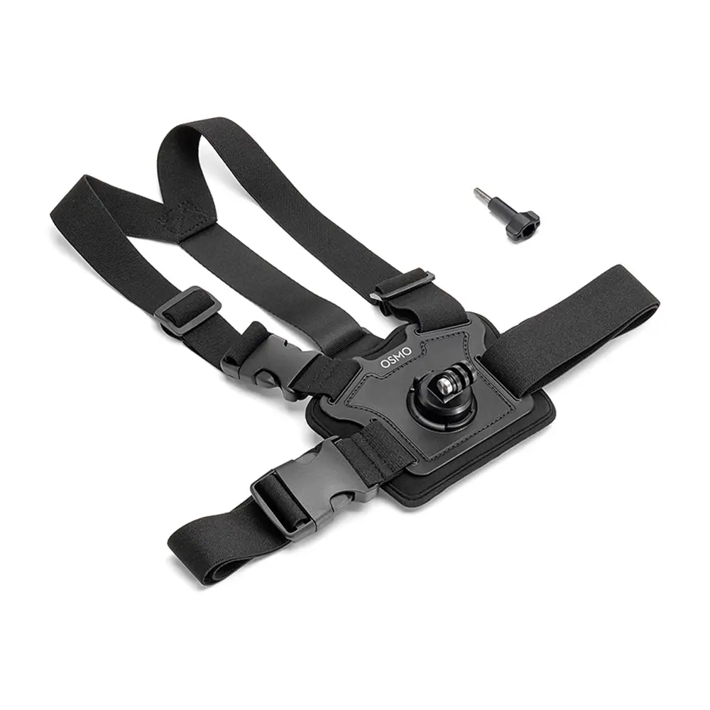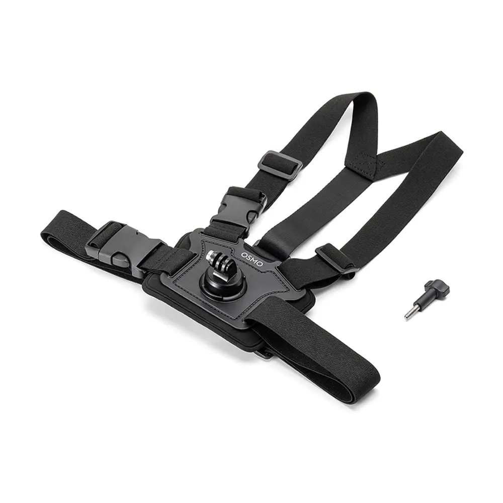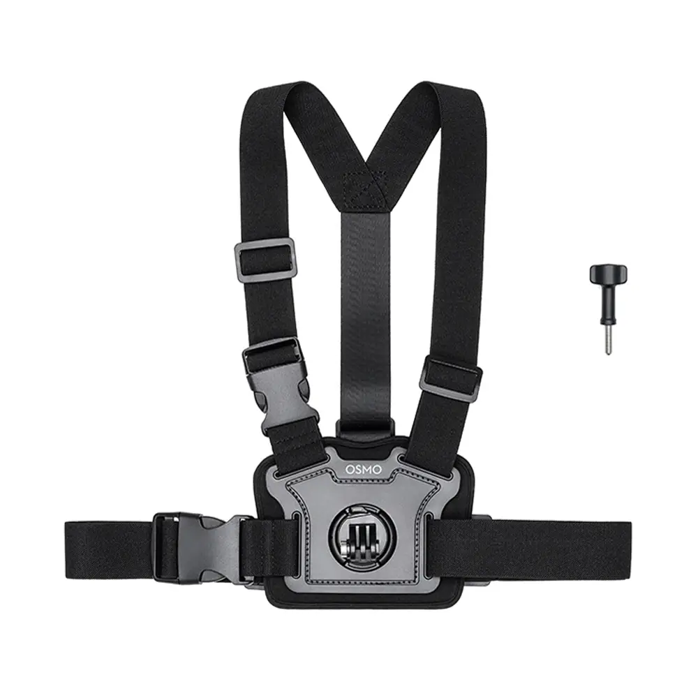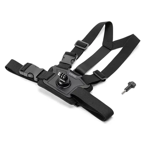 Technische Daten:Osmo Action Brustgurthalterung: Abmessungen: 340 × 230 × 74 mm (L×B×H), Gewicht: 216 gOsmo Feststellschraube: Abmessungen: 55,6 × 23 ×13,3 mm (B×T×H), Gewicht: 11,2 g