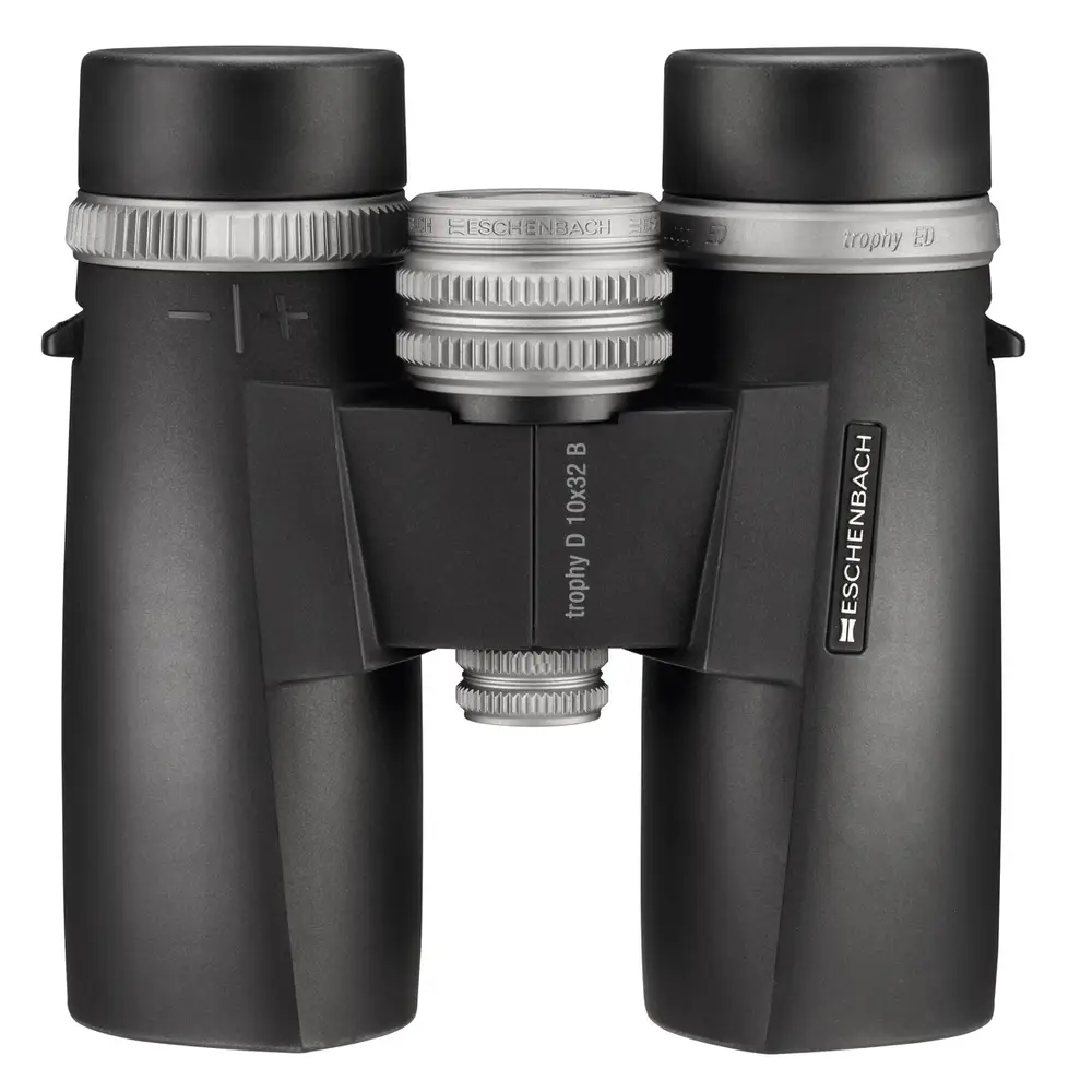 Hauptmerkmale• Extra großes Sehfeld: Hochwertige Weitwinkeloptik sorgt für mehr Sichtfreiheit und höchsten Beobachtungskomfort.• Besonders plastische, farbtreue Abbildung: dank mehrschichtvergüteter Hochleitungs-Linsen aus speziellem Extra-Low-Dispersion Glas.• Hohe Brillanz durch phasenkorrigierte BaK-4-Prismen mit dielektrischer Verspiegelung.• Äußerst robust: Hochwertige Stellräder aus Metall und einem schlagfesten Magnaliumgehäuse garantieren lange Beobachtungsfreude.• Wetterfest, da wasserdicht und stickstoffgefüllt.• Brillenträger-Okulare bieten auch (Sonnen-)Brillenträgern ein optimales Sehfeld.• Stabiles Stativgewinde sorgt jederzeit für wackelfreie Beobachtungsfreude.SPEZIFIKATIONENBauart: DachkantfernglasVergrößerung: 10 xObjektiv-Durchmesser: 32 mmNahpunkt: 2,5 mGewicht: 534 gSehfeld m/1000m: 105Fernglasmaße (HxBxT): 125x118x50 mmPupillenschnittweite: 14Pupillendistanz: 54/74Austrittspupille: 3,2 mmGeometrische Lichtstärke: 10,2Dämmerungszahl: 17,9Prismen: BaK-4Vergütung: Mehrschicht-VollvergütungWasserdicht: JaStickstoffgefüllt: JaWeitwinkeloptik: JaBrillenträgerokulare: JaPhasenkorrigiert: JaExtra-Low-Dispersion Glas: JaLieferumfang1x trophy D 10x32 B ED Fernglas1x Komfort-Trageriemen mit Schnellverschluss1x hochwertige Tasche4x Staubschutzkappen