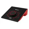 Rund um den großen und präzise laufenden Qualitätsregler für die Abhörlautstärke sind sechs Schalttaster übersichtlich angeordnet. Ein Taster dient zum Wechsel zwischen den beiden Stereoquellen (A/B). Für die Ausgänge hat man zwei einzelne Taster (A und B) zur Verfügung, die auch beide gleichzeitig aktiviert werden können. Der MoCo kann also sowohl für Vergleiche zwischen zwei angeschlossenen Studiomonitorpärchen genutzt werden - in diesem Fall müsste man immer einer der beiden Ausgänge deaktivieren -, als auch für die Kombination aus Monitoren und Subwoofer, letzterer könnte dann bequem vom MoCo aus dazu oder weggeschaltet werden.