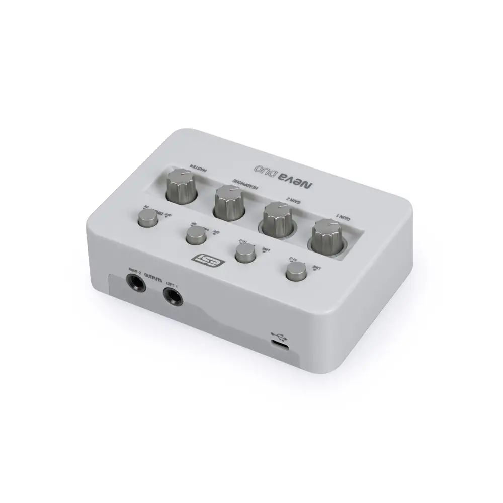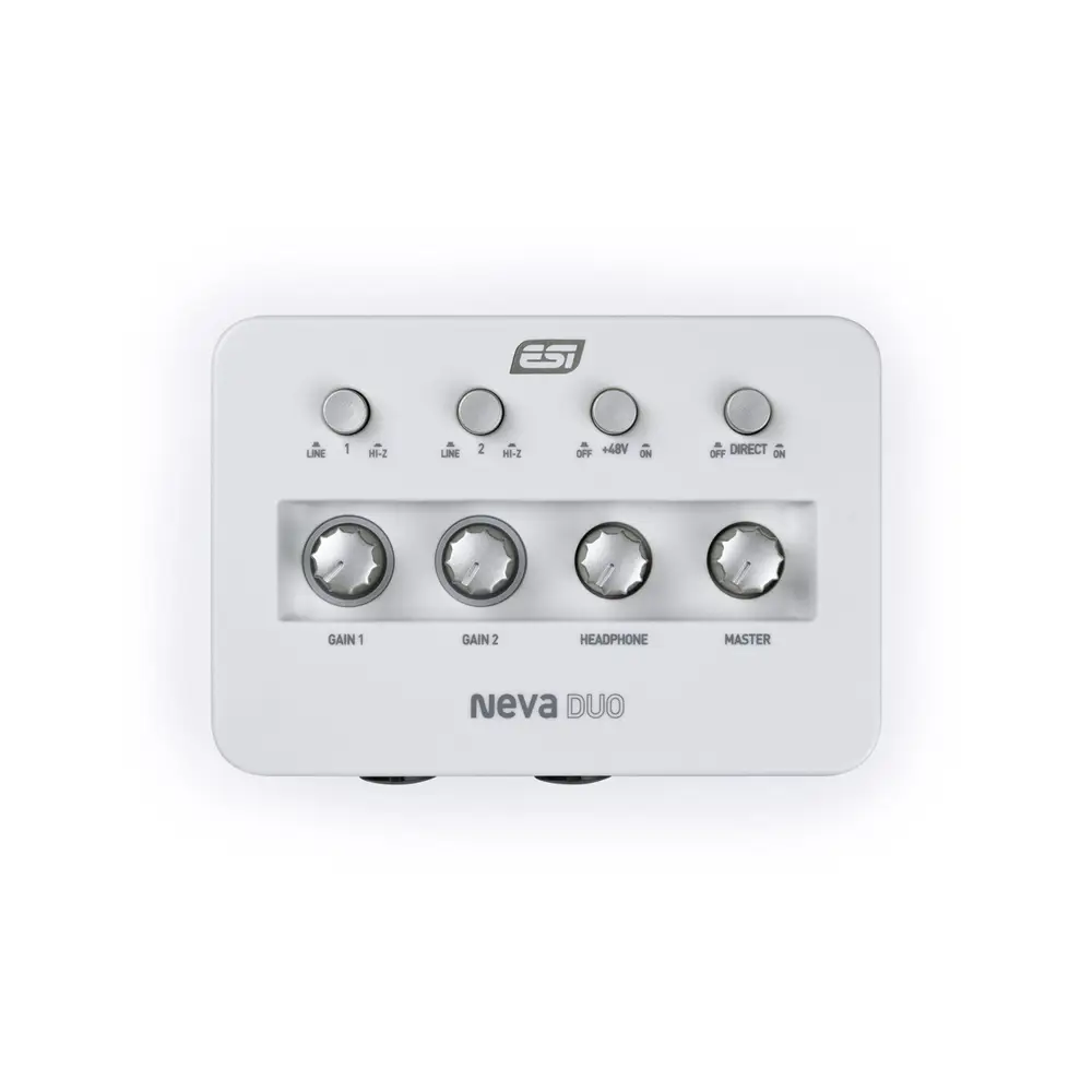 Ausgestattet mit einem Mikrofon- und einem Gitarreneingang sowie zwei Line-Eingängen bietet es alles, was Du brauchst, um gleich loslegen zu können. Durch den USB-C Anschluss lässt es sich spielend leicht mit Deinem Rechner oder Mobilgerät verbinden. Die gewohnt professionellen ESI ASIO-Treiber inklusive DirectWIRE-Loopbackfunktion und anderen Features sorgen dafür, dass die Arbeit mit dem Neva Duo ein Kinderspiel wird! Außerdem enthalten: ein umfangreiches und starkes Softwarepaket für Mac und Windows.