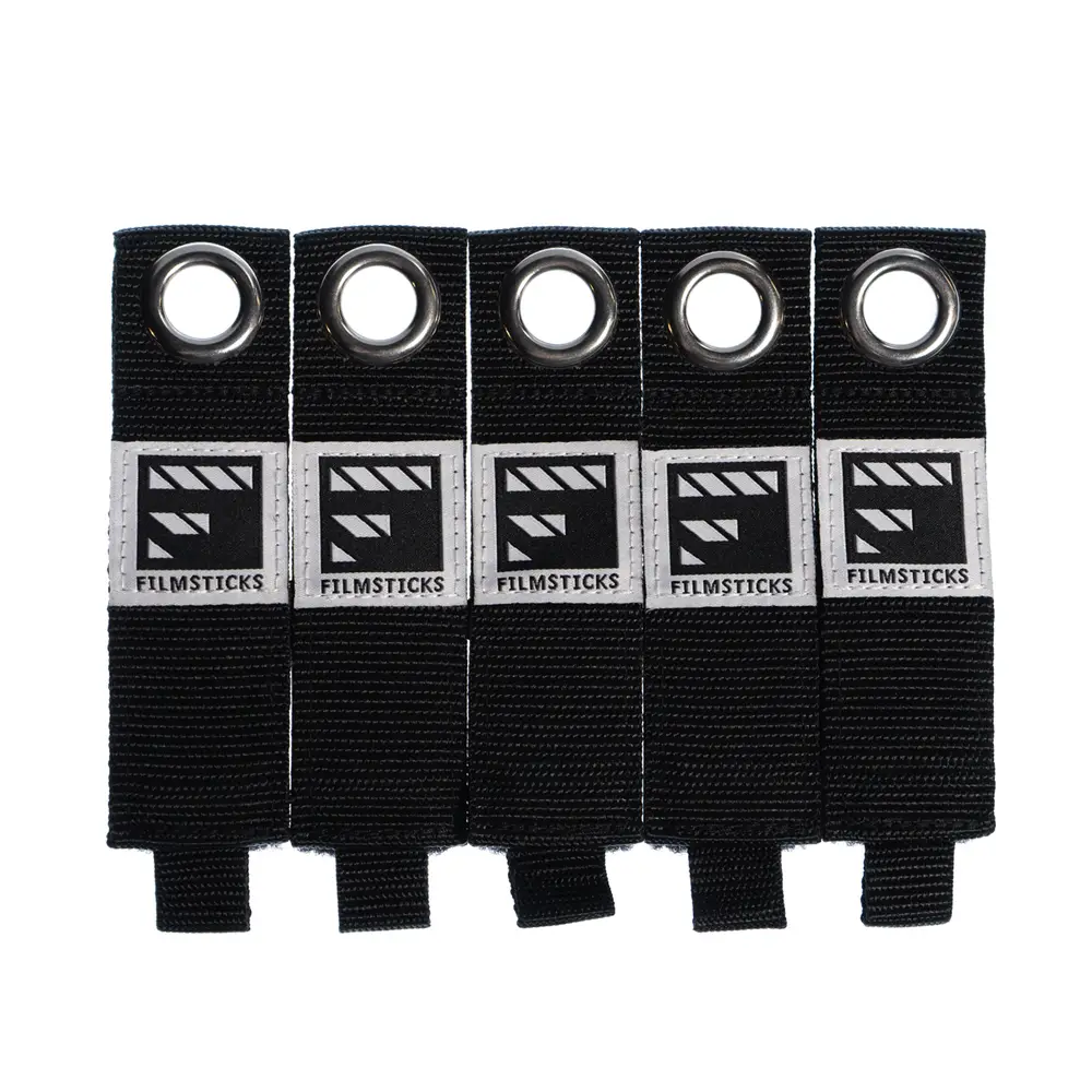 Das Filmsticks Heavy Duty Hook&Loop Cable Strap (MEDIUM) 5er-Pack beinhaltet kleine Gurte zum Sichern von verschiedenen Kabeln. Dank der Herstellung aus stabilen Materialen haben die Gurte eine hohe Tragkraft von bis zu etwa 20 kg. Dadurch können viele kleinere oder schwere Kabel gebunden und ordentlich gehalten werden. Sie sind auch dafür geeignet, Stangen, Vorhänge oder Beleuchtungen zu sichern.