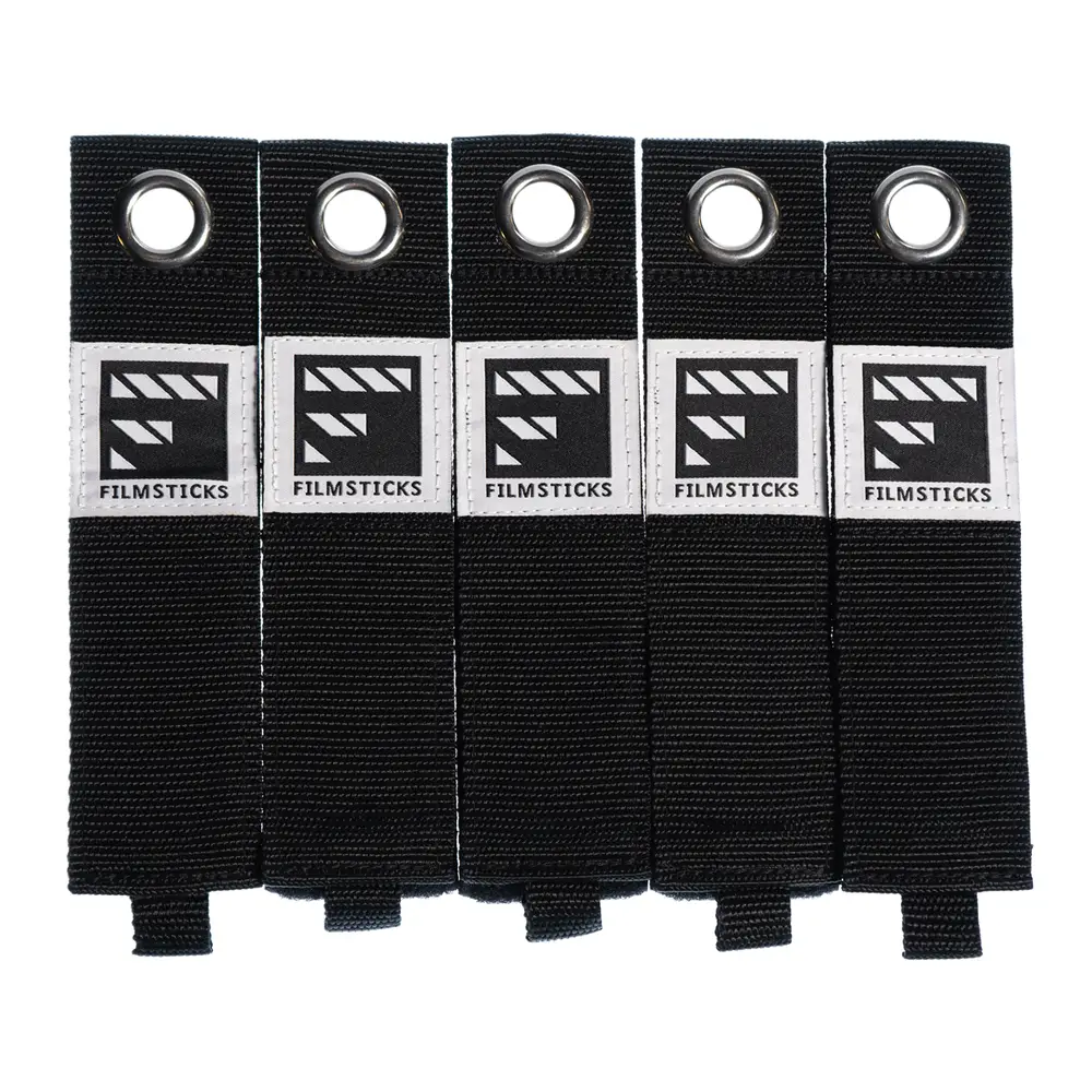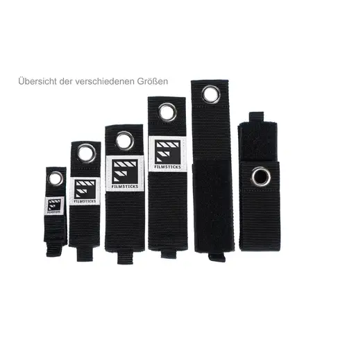 Das Filmsticks Heavy Duty Hook&Loop Cable Strap (XLARGE) 5er-Pack beinhaltet kleine Gurte zum Sichern von verschiedenen Kabeln. Dank der Herstellung aus stabilen Materialen haben die Gurte eine hohe Tragkraft von bis zu etwa 20 kg. Dadurch können viele kleinere oder schwere Kabel gebunden und ordentlich gehalten werden. Sie sind auch dafür geeignet, Stangen, Vorhänge oder Beleuchtungen zu sichern.