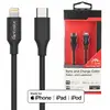 Schnellladefähiges Lade- und Datenkabel zum Anschluss an Apple Lightning Geräten. Das Kabel kann zum Schnellladen kompatibler Geräte verwendet werden, um innerhalb von 30 Minuten bis zu 50% des Akkus aufzuladen. Das Lade- und Datenkabel hat eine Länge von 1,2 Metern, verfügt über einen USB Type-C Stecker und Apple Lightning Stecker.