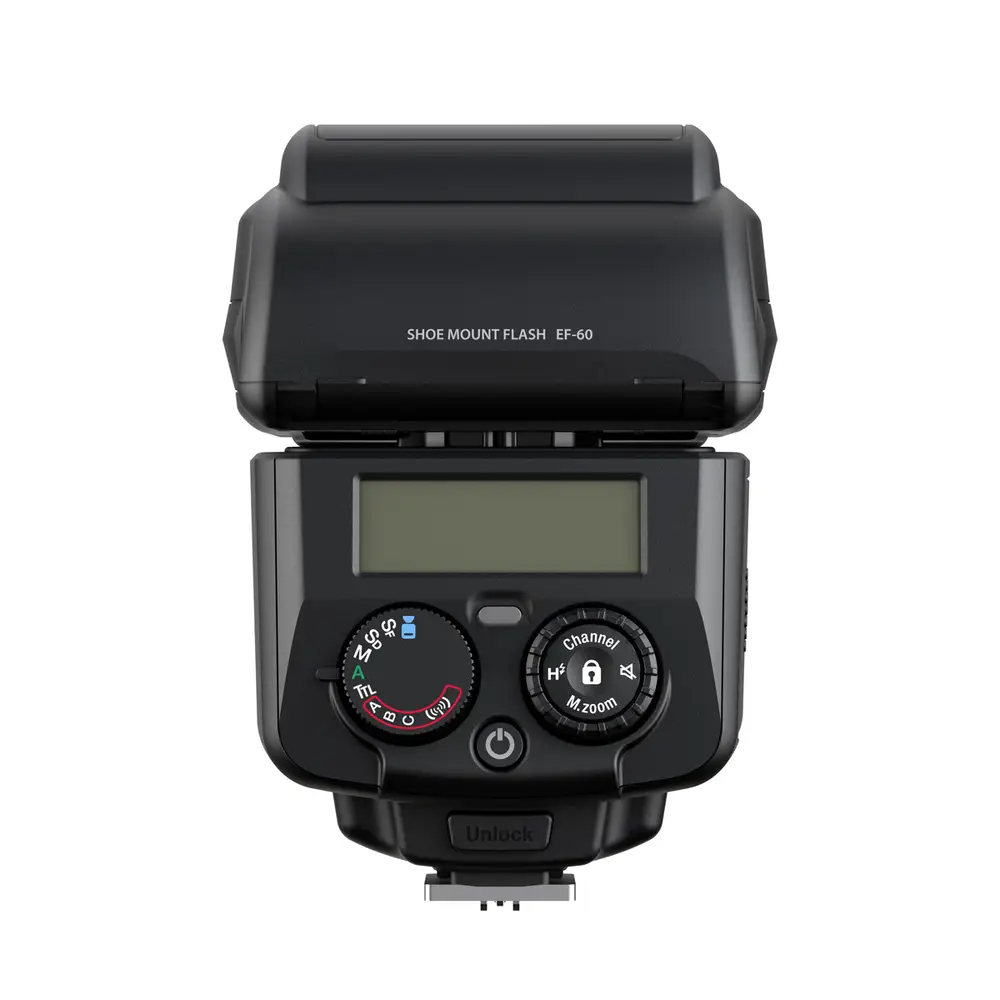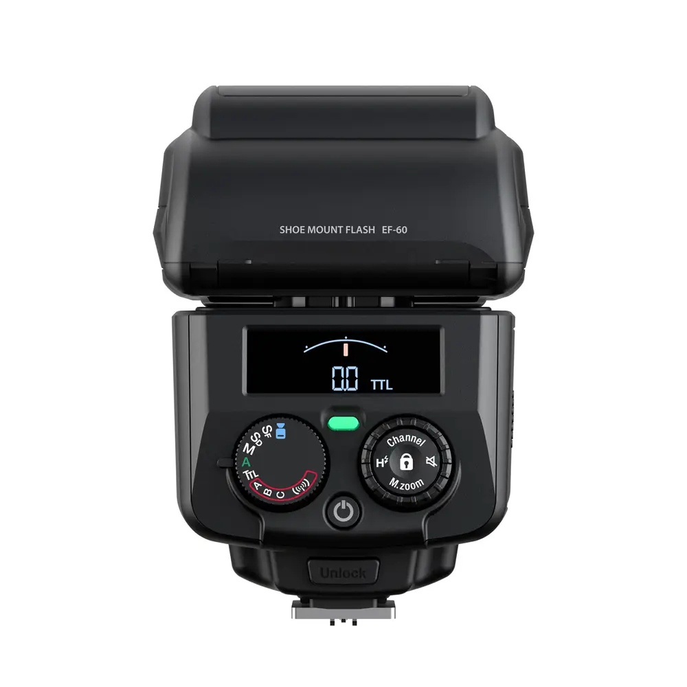 Der EF-60 unterstützt sowohl den TTL-Modus zur automatischen Einstellung der optimalen Belichtung als auch den manuellen Modus, mit dem der Benutzer die Leistung manuell einstellen kann.